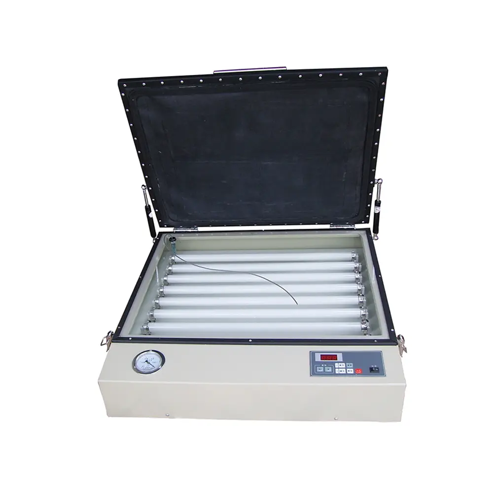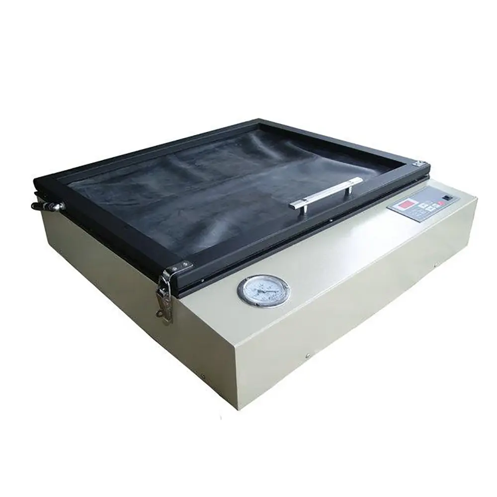 La máquina de impresión de planchas es un dispositivo de imágenes por exposición por contacto que se utiliza para fabricar planchas de impresión. Utiliza presión (incluida la presión atmosférica y la presión mecánica) para hacer que la placa original y la placa fotosensible encajen perfectamente, de modo que la imagen de la placa original pueda exponerse con precisión mediante una reacción fotoquímica. Realizado sobre placa fotosensible. La máquina de impresión se compone principalmente de un dispositivo de fuente de luz, una cámara de exposición, una cámara de vacío, piezas eléctricas, una base de la máquina y otras piezas.