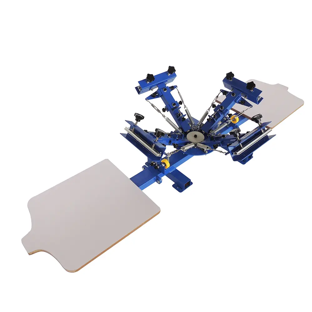 La máquina de serigrafía de escritorio de 4 colores y 2 estaciones puede instalar simultáneamente cuatro placas de pantalla